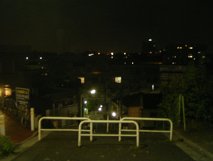 長い滝のように思える階段の頂にはひとつの街灯が若々しい光を灯している。